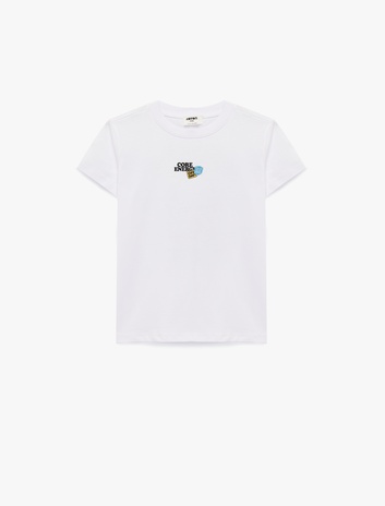 Rahat Kalıp Kısa Kollu Bisiklet Yaka Baskılı Tişört Sepete Ekle