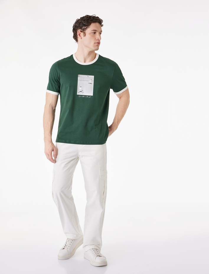 Regular Fit Kısa Kollu Biyeli Bisiklet Yaka Pamuklu Baskılı Tişört Sepete Ekle