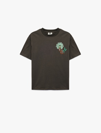 Kısa Kollu Bisiklet Yaka Nakış Detaylı Pamuklu Tişört Sepete Ekle