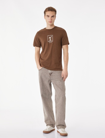 Regular Fit Kısa Kollu Pamuklu Bisiklet Yaka Baskılı Tişört Sepete Ekle