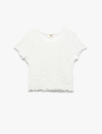 Basic Kısa Kollu Bisiklet Yaka Dokulu Crop Tişört Bürümcük