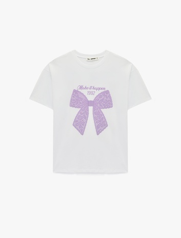 Kısa Kollu Bisiklet Yaka Fiyonk Baskılı Oversize Tişört Sepete Ekle