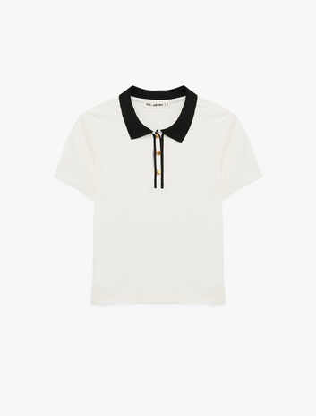 Polo Yaka Rugby Tişört Crop Düğmeli Kısa Kollu Rahat Kalıp Sepete Ekle