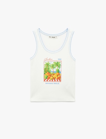 Pamuklu Bisiklet Yaka Baskılı Kolsuz Bluz Sepete Ekle