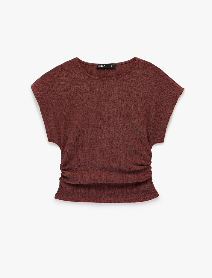Bürümcük Kumaş Slim Fit Kısa Kollu Bisiklet Yaka Drapeli Dokulu Tişört Sepete Ekle