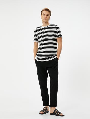 Basic Tişört Bisiklet Yaka Kısa Kollu Dokulu Pamuklu