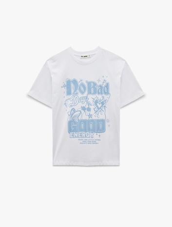 Rahat Kalıp Kısa Kollu Bisiklet Yaka Baskılı Tişört Sepete Ekle