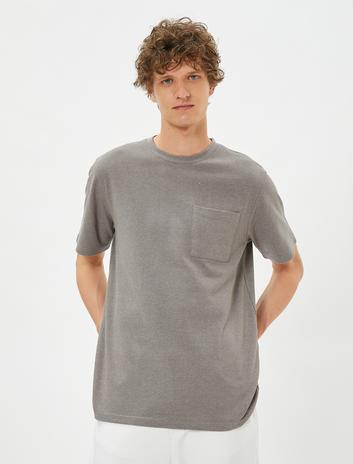 Basic Tişört Cep Detaylı Dokulu Kısa Kollu Bisiklet Yaka Sepete Ekle