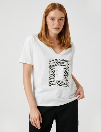 Kısa Kollu Tişört Parlak Yazı Baskılı V Yaka Sepete Ekle
