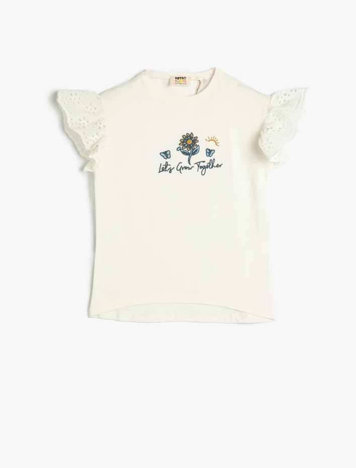Tişört Fırfırlı Kısa Kollu Bisiklet Yaka Pamuklu Sepete Ekle