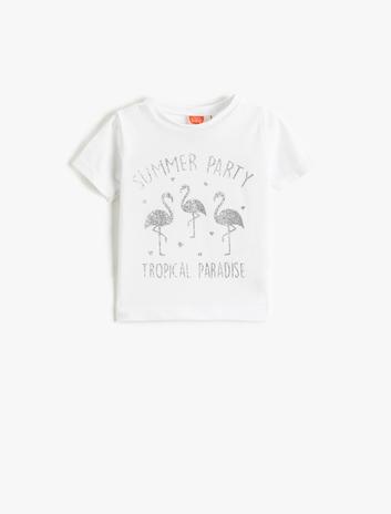 Tişört Kısa Kollu Yuvarlak Yaka Flamingo Baskılı Pamuklu Sepete Ekle