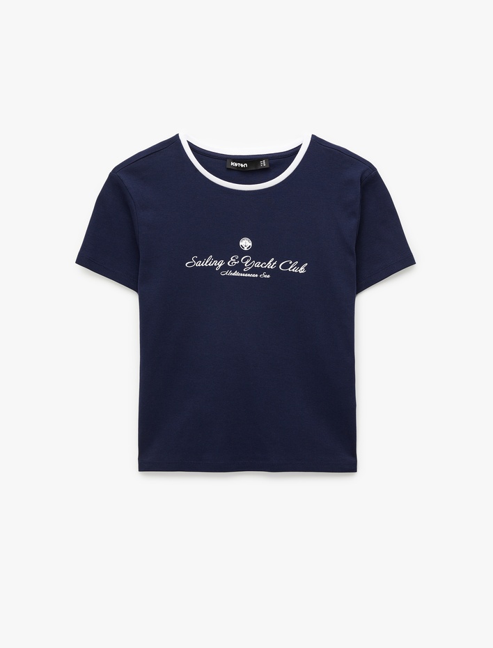 Pamuklu Kısa Kollu Bisiklet Yaka Baskılı Tişört Sepete Ekle