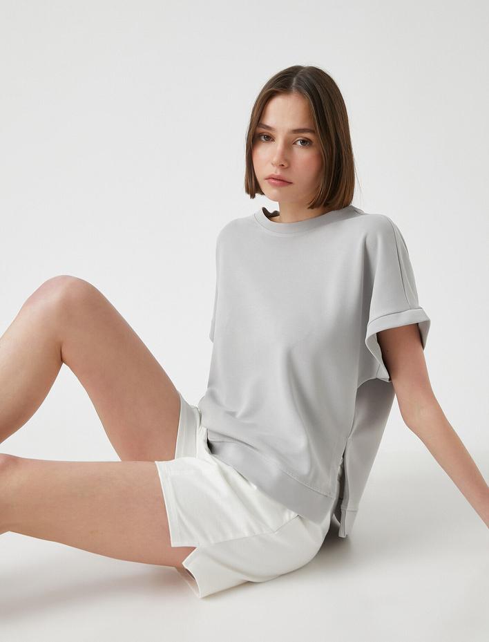 Bisiklet Yaka Kısa Kollu Zincir Detaylı Tişört Sepete Ekle