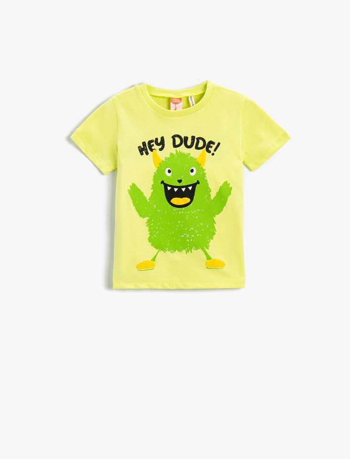 Canavar Baskılı Kısa Kollu Tişört Pamuklu Sepete Ekle