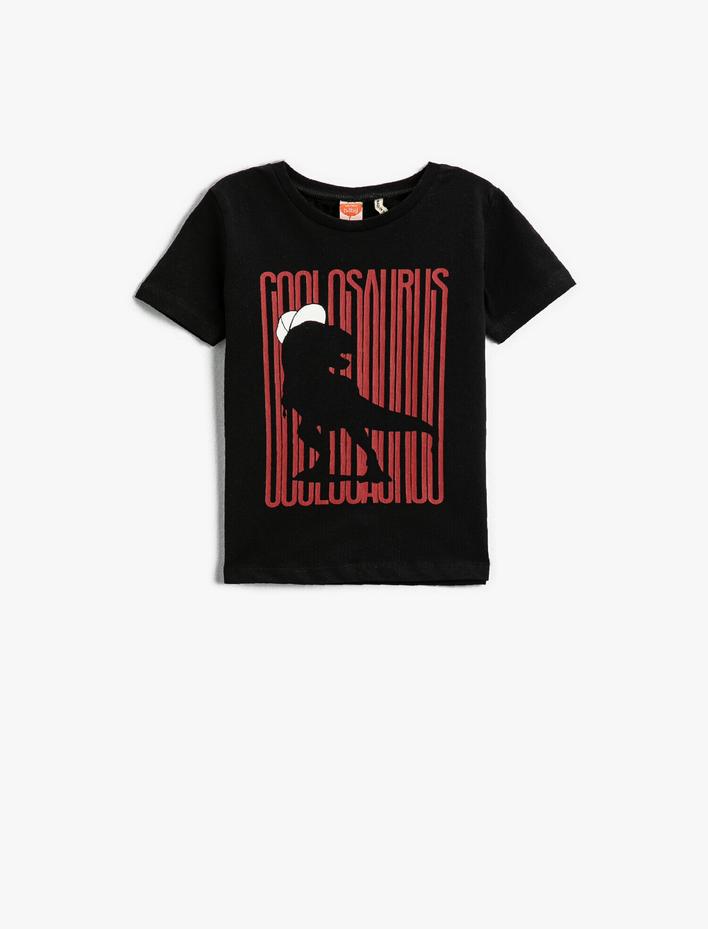 Dinozor Baskılı Kısa Kollu Tişört Pamuklu Sepete Ekle