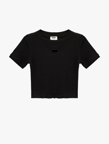Pamuklu Kısa Kollu Kalp Pencere Detaylı Crop Tişört Sepete Ekle