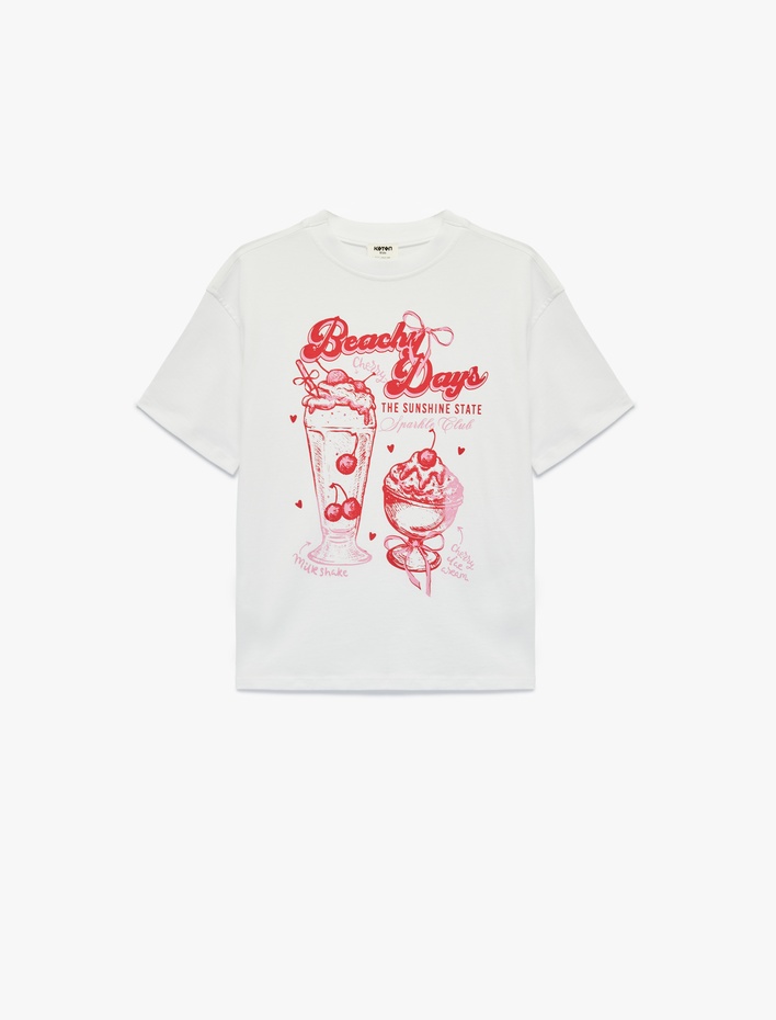 Pamuklu Kısa Kollu Bisiklet Yaka Baskılı Tişört Sepete Ekle