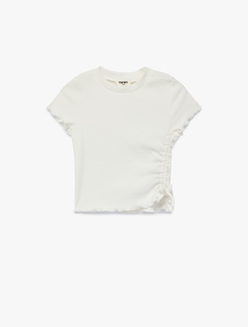 Pamuklu Büzgülü Kısa Kollu Bisiklet Yaka Tişört Sepete Ekle