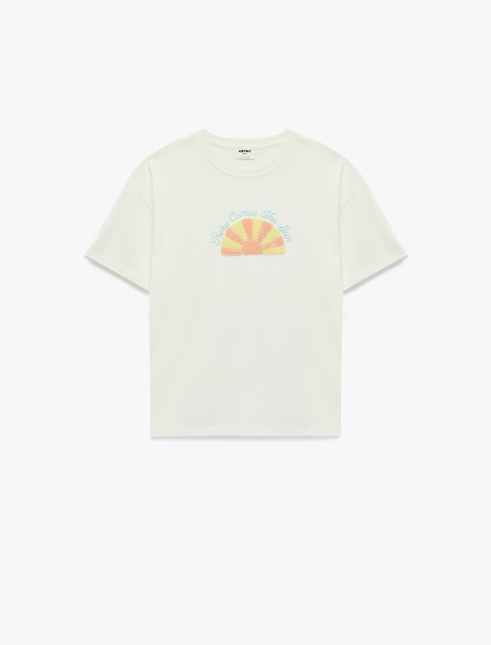 Kısa Kollu Bisiklet Yaka Nakışlı Pamuklu Tişört Sepete Ekle