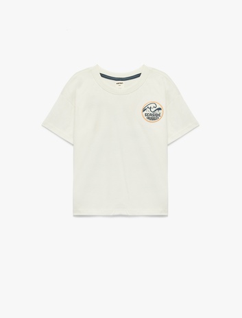 Bisiklet Yaka Pamuklu Pullu İşlemeli Kısa Kollu Tişört Sepete Ekle