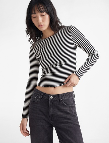 Uzun Kollu Pamuklu Kayık Yaka Çizgili Tişört Sepete Ekle