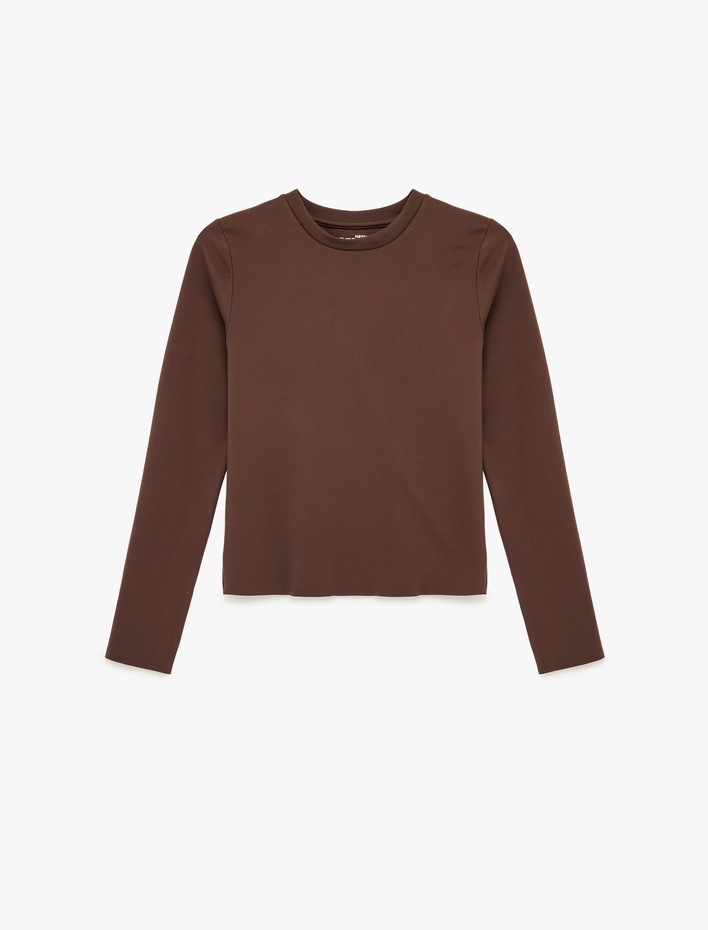 İnterlok Uzun Kollu Bisiklet Yaka Slim Fit Spor Crop Tişört Sepete Ekle