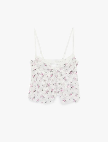 Crop Fisto Çiçekli Üst Fırfırlı Pamuklu