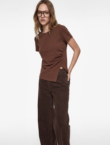 Slim Fit Kısa Kollu Büzgülü Bisiklet Yaka Bürümcük Tişört