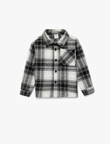 Erkek Bebek Uzun Kollu Klasik Yaka Cepli Düğmeli Oduncu Gömleği