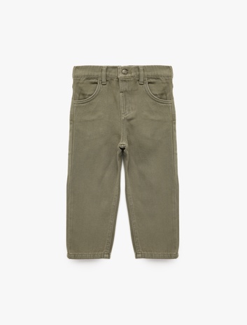 Erkek Bebek Beli Lastikli Düğmeli Pamuklu Havuç Kesim Pantolon