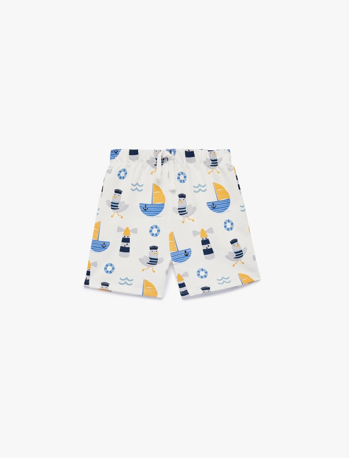 Pamuklu Beli Bağcıklı Baskılı Şort Sepete Ekle