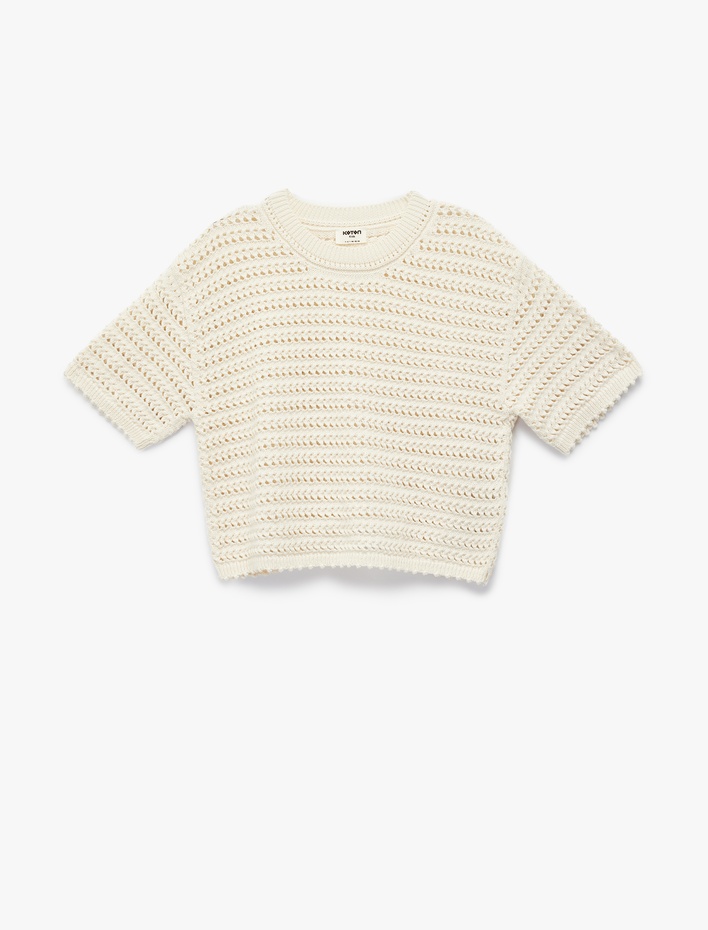 Ajurlu Kısa Kollu Bisiklet Yaka Pamuklu Triko Kazak Sepete Ekle