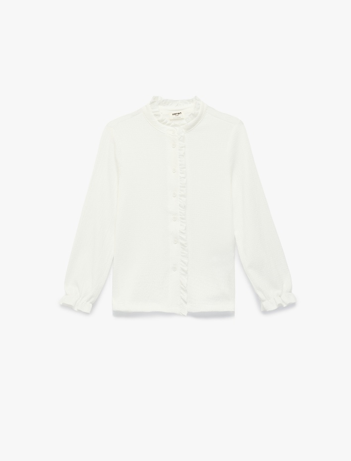Dik Yaka Düğme Detaylı Fırfırlı Uzun Kollu Bluz Sepete Ekle