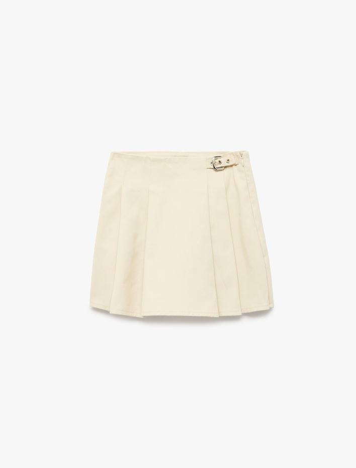 Metal Toka Detaylı Pamuklu Pileli Şort Etek Sepete Ekle