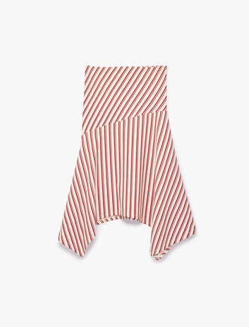 Pamuklu Asimetrik Kesim Çizgili Midi Etek Sepete Ekle