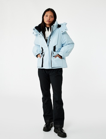 Çıkarılabilir Kapüşonlu Cep Detaylı Su Geçirmez Oversize Uzun Anorak Mont