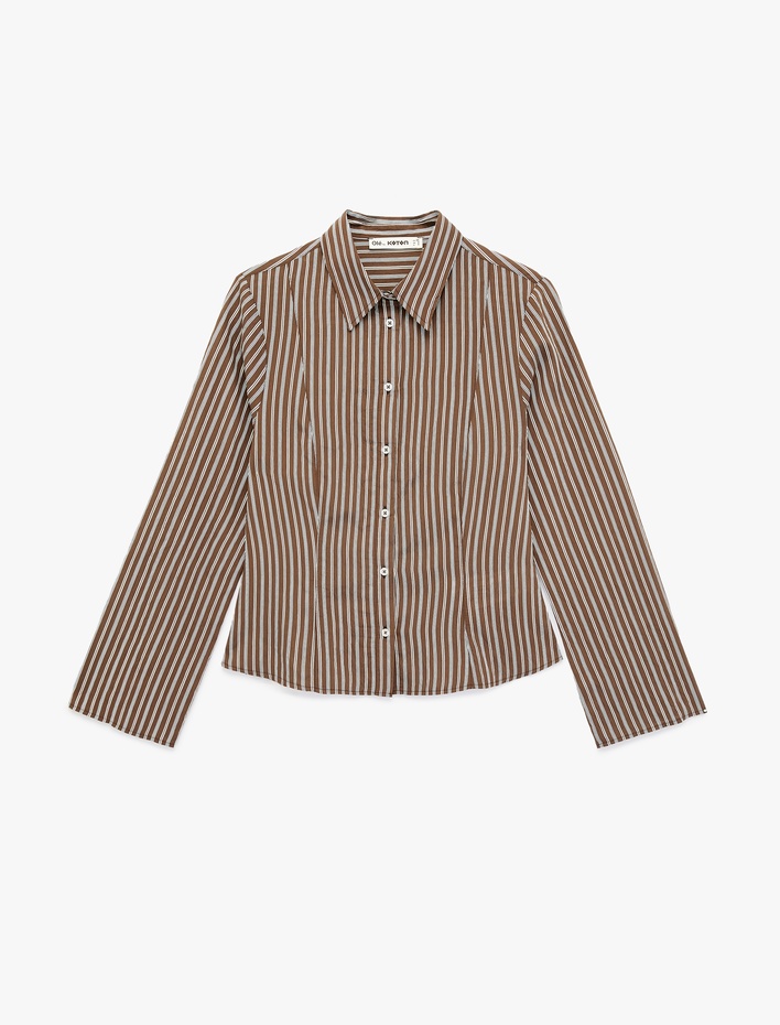Uzun Kollu Klasik Yaka Slim Fit Viskon Çizgili Gömlek Sepete Ekle