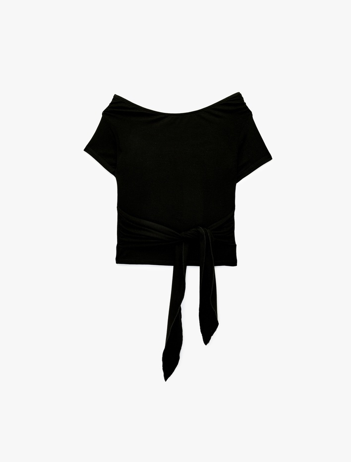 Likralı Viskon Kumaş Slim Fit Bağlama Detaylı Kayık Yaka Kısa Kollu Bluz Sepete Ekle