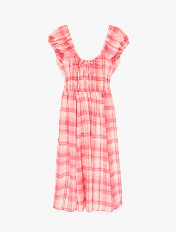{ "item_name": "Viskon Kumaş Volümlü Fırfırlı Kısa Kollu Fiyonklu Bağlamalı U Yaka Kareli Uzun Elbise", "item_id": "8684970855284", "price": 2699.99 , "item_brand": "Koton", "item_category":"CITY FASHION", "item_category2":"CITY FASHION", "item_category3":"WOMEN", "item_category4":"WOVEN DRESSES", "item_category5":"DRESSES", "item_season":"2026 SPRING/SUMMER", "item_variant": "PEMBE DESENLİ|38", "item_list_name":"Çatı 11.12.24", "item_list_id":"3863", "index": 0 , "quantity":1, "base_code": "6SAK80286EW" }