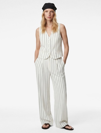 Düğmeli V Yaka Çizgili Yelek Sepete Ekle