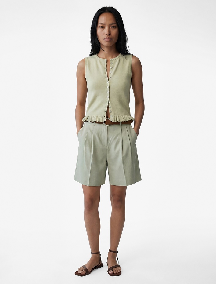 Fırfırlı Düğmeli Bisiklet Yaka Triko Yelek Sepete Ekle