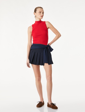 Viskon Karışımlı Kalın Piliseli Mini Etek Sepete Ekle