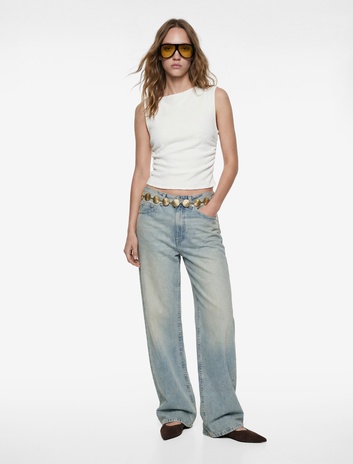 Slim Fit Uzun Kollu Metal Aksesuarlı Degaje Yaka Tişört Sepete Ekle