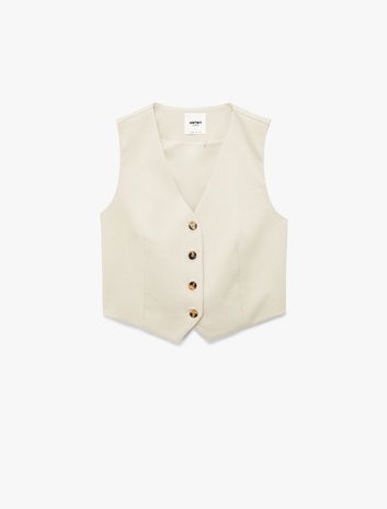 { "id": "8684847666401", "name": "Düğmeli Viskon Karışımlı Kolsuz V Yaka Yelek", "taxonomy":["CITY FASHION","BUSINESS","WOMEN","BLAZERS","VESTS"], "currency": "TRY", "unit_price": 1299.99 , "unit_sale_price": 1299.99 , "url": "https://www.koton.com/dugmeli-viskon-karisimli-kolsuz-v-yaka-yelek-ekru-4120032-2/", "stock": 31, "color": "BEJ", "size": "40", "product_image_url": "https://ktnimg2.mncdn.com/products/2026/01/21/3183877/f9687347-ef61-46bc-ba5e-4adc39e5617b_size870x1142.jpg" }