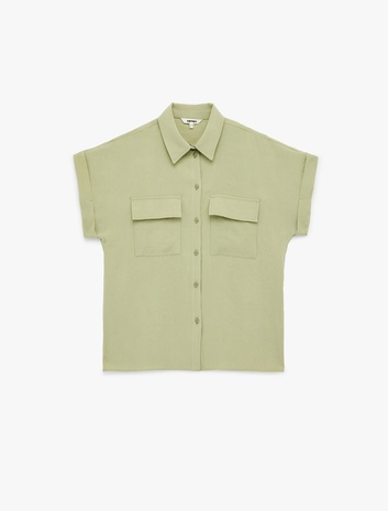 Kupro Viskon Kumaş Cep Detaylı Kısa Kollu Gömlek Sepete Ekle