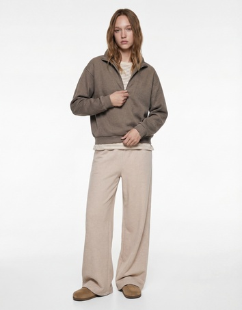Dik Yaka Fermuarlı Rahat Kalıp Triko Pijama Üstü