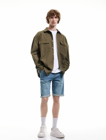 Katlamalı Paça Bermuda Slim Fit Denim Şort Sepete Ekle