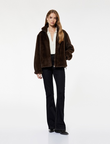 Koton X Sima Tarkan - Suni Süet Astarlı Dik Yaka Uzun Kollu Crop Fermuarlı Peluş Mont Sepete Ekle