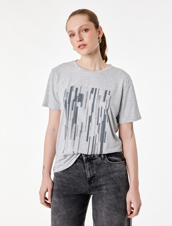 Kısa Kollu Bisiklet Yaka Baskılı Tişört Sepete Ekle