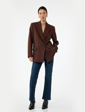 Kruvaze Yaka Uzun Kollu Bağlama Detaylı Blazer Ceket